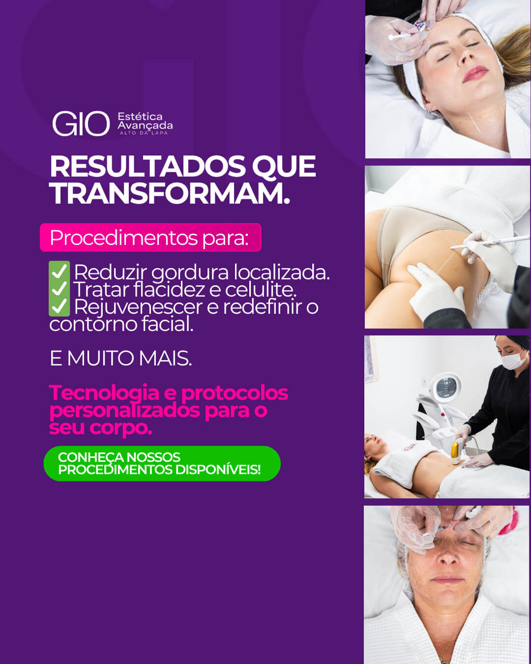 Aqui na GiO Alto da Lapa a prioridade é cuidar de você de forma completa, oferecendo um ambiente acolhedor e tratamentos estéticos incríveis.