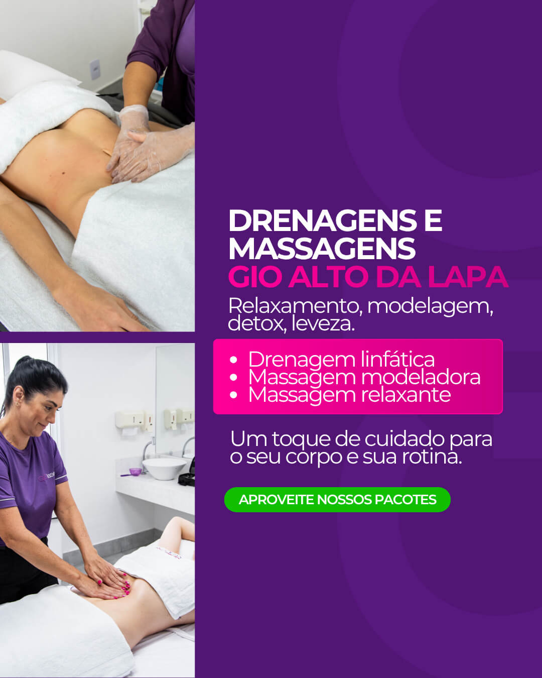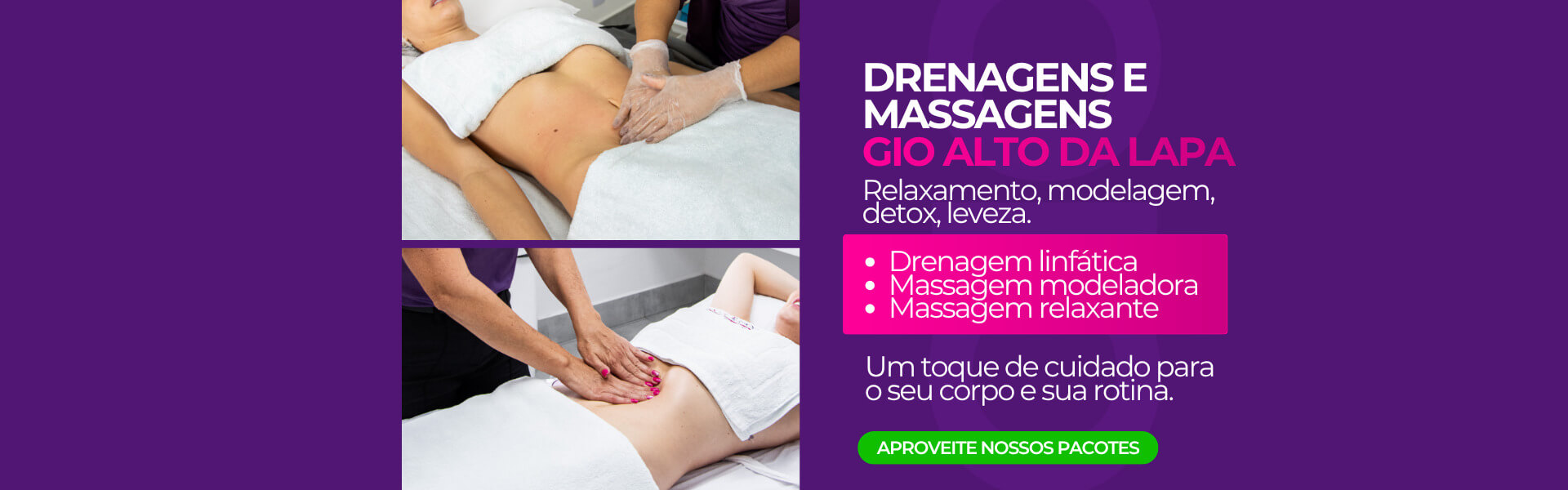 A drenagem linfática é uma massagem, com movimentos específicos, que tem como função acelerar o processo de retirada de líquidos acumulados entre as células e os resíduos metabólicos, além de proporcionar relaxamento e bem estar.